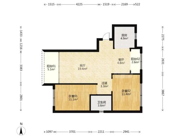 房屋戶型: 2 室1廳 1 廚1衛(wèi)