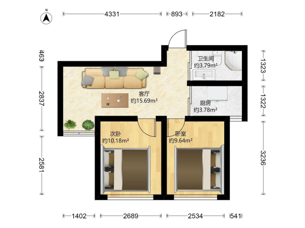 房屋戶型: 2 室1廳 1 廚1衛(wèi)