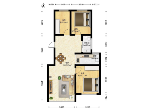 房屋戶型: 3 室2廳 1 廚1衛(wèi)