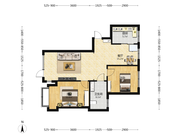 房屋戶型: 2 室2廳 1 廚1衛(wèi)