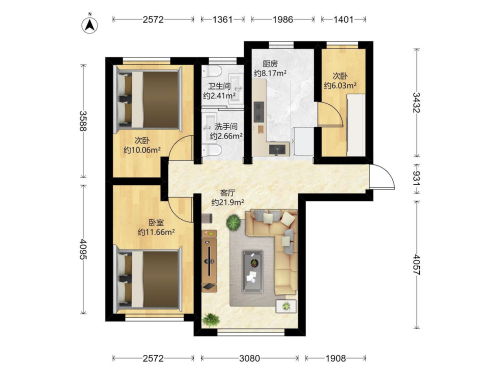 房屋戶型: 2 室2廳 1 廚1衛(wèi)