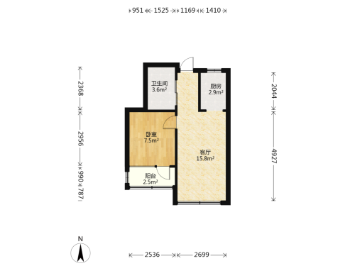 房屋戶型: 1 室1廳 1 廚1衛(wèi)