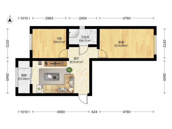 房屋戶型: 2 室2廳 1 廚1衛(wèi)