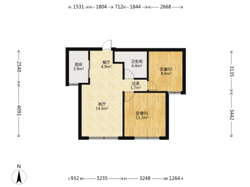 房屋戶型: 2 室1廳 1 廚1衛(wèi)