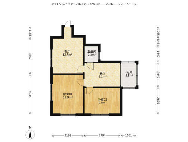 房屋戶型: 2 室1廳 1 廚1衛(wèi)
