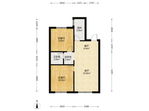 房屋戶型: 2 室2廳 1 廚1衛(wèi)
