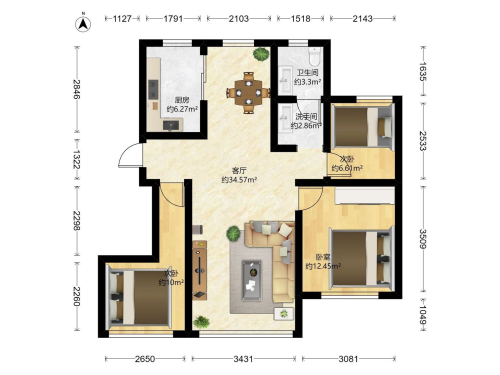房屋戶型: 3 室2廳 1 廚1衛(wèi)