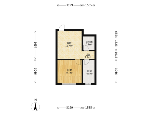 房屋戶型: 1 室1廳 1 廚1衛(wèi)