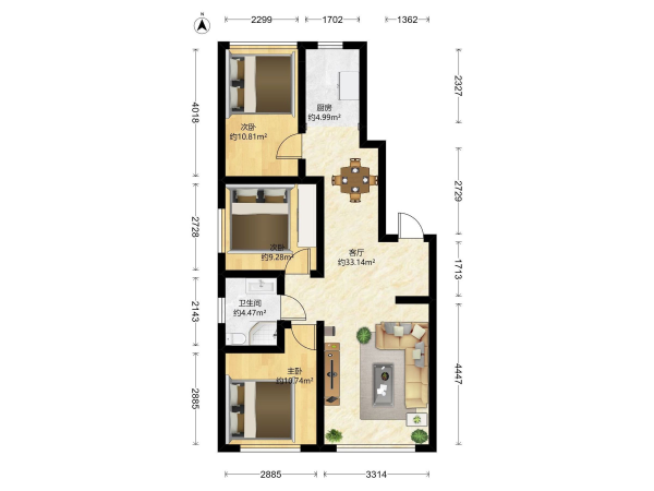 房屋戶型: 3 室2廳 1 廚1衛(wèi)