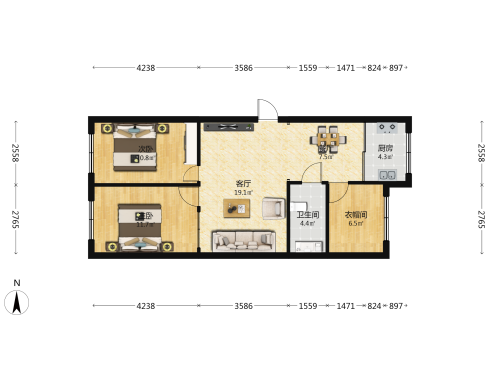 房屋戶型: 3 室2廳 1 廚1衛(wèi)