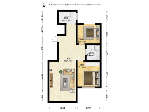 房屋戶(hù)型: 2 室2廳 1 廚1衛(wèi)