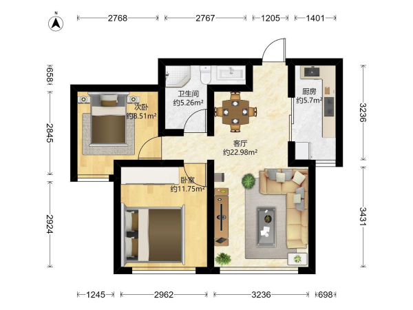 房屋戶型: 2 室1廳 1 廚1衛(wèi)