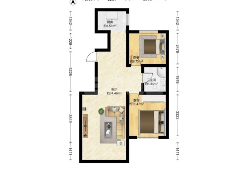 房屋戶型: 2 室2廳 1 廚1衛(wèi)
