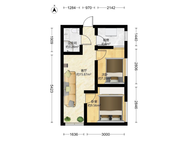 房屋戶型: 2 室1廳 1 廚1衛(wèi)